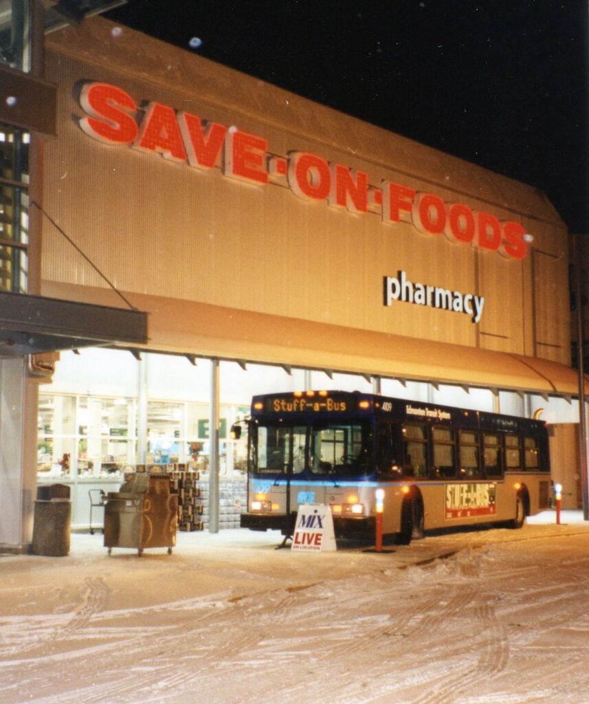 In 1995, a small but mighty group of compassionate ETS employees asked themselves these questions. Inspired by observation and acting upon the desire to help others in the community, they banded together. They leveraged their work with Edmonton Transit System (now Edmonton Transit Service) by initiating the idea of stuffing a bus with food donations to help Edmontonians struggling to get enough food on the table.