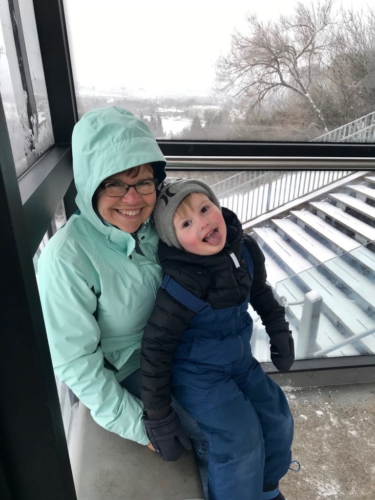 Janice is a resident of Clareview and has used the funicular six times in the last year. Her favourite part is visiting funicular proper (stairs, lookout and bridge) as “special days” with her grandchildren and exploring the river valley trails. Pictured here with Janice is four-year-old Parker who loves to ride the funicular up and down over and over again.