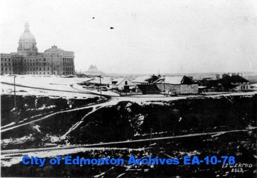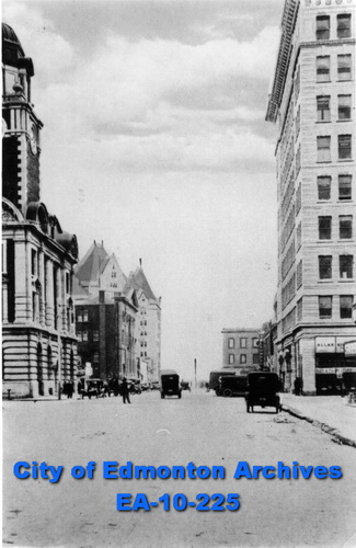 Our database is full of images like 100 Street Looking South (above) which shows a mix of the familiar and the lost. In this case, the Hotel Macdonald and the McLeod Building still stand but the post office on the left is now the site of the Westin Hotel.