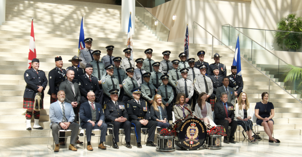 Editor’s note: the photo at the top of the post shows graduates of the Community Peace Officer Induction Program Class 35 during a ceremony at City Hall in Edmonton, July 12, 2022.