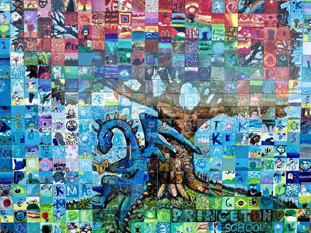 Editor’s note: the pic at the top of the post shows a student and some parents and teachers painting tiles for the Princeton mural on February 27, 2024. From left to right: curriculum coordinator Darcy Crichton, student Prince Petersen and his dad David, Craig Miller, teacher Matt Labossiere, and principal Annette Hlavacek.