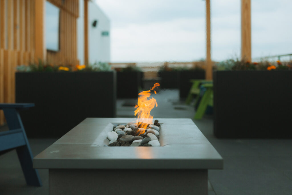 Every unit in The Mercury Block has direct outdoor access for residents to enjoy. They even have their own backyard—a rooftop patio with fire tables, lawn games and an outdoor TV that can be enjoyed whether it’s a sunny day in July or a chilly evening in December.