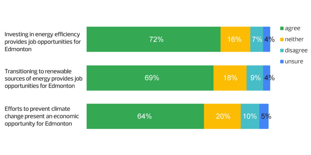 • 64 per cent agree that efforts to prevent climate change present economic opportunities for Edmonton.