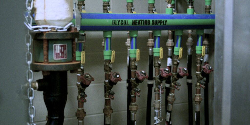How much more efficient specifically? The energy you’re putting into a geoexchange system goes into the heat pump—the electrically powered device that moves and extracts energy from — and throughout the loop that dips down from the building and into the earth. According to the Pembina institute, for each unit of energy that goes into that pump, you get back anywhere from 2 to 5 units of energy stored in the earth. That’s 200 to 500 per cent efficiency. How does that compare with its main competitor? Well, the highest rated natural gas furnace caps out at 96 per cent.