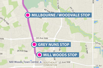 Now, with three stops directly serving Mill Woods—the Millbourne/Woodvale Stop, the Grey Nuns Stop and the Mill Woods Stop, Valley Line will stitch this community together even tighter, whether residents hop on the train to see Santa at Mill Woods Town Centre, visit a sick friend at the Grey Nuns Hospital, take the kids to swimming lessons at Mill Woods Recreation Centre or ride to class at one of the two local high schools.