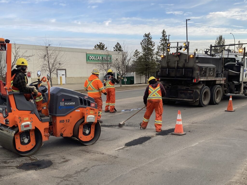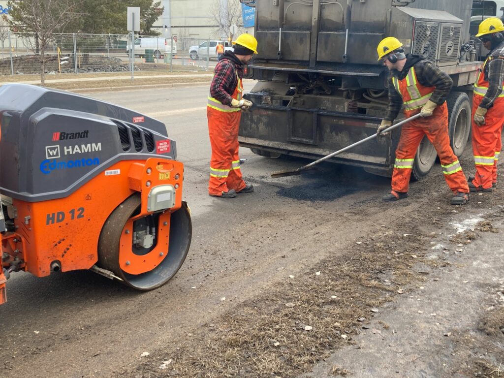 Editor’s note: the pic at the top of the post shows a City road maintenance crew repairing potholes on 85 Street and 96 Avenue in Strathearn.