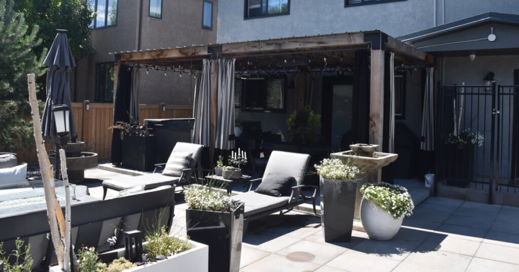 “One of our tenants loves gardening, so we set up two garden plots for her and the others,” Tarrabain explained. “And since my husband and I don’t drive much, [and] being outdoorsy people, we decided to turn our garage into a lovely space for hosting outdoor gatherings.”