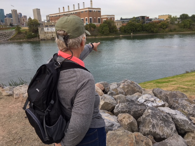 “They were all standing over there, eight or 10 white birds,” Betty said as she pointed across the North Saskatchewan from a trail down the stairs from the bridge’s southeast plaza.