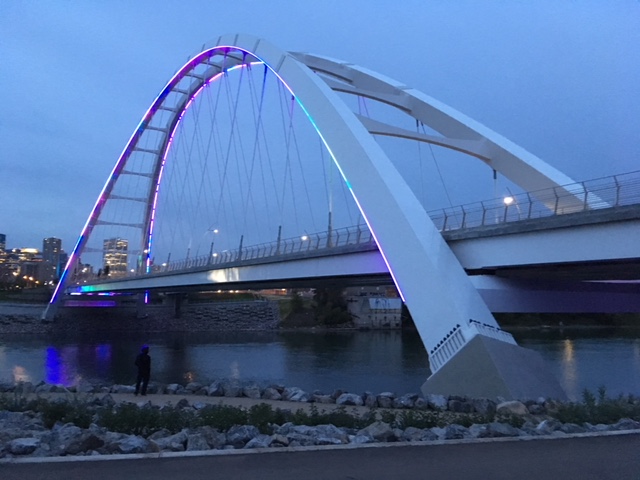 The $155-million Walterdale Bridge Replacement Project began in spring 2013. In September 2017, the bridge opened to vehicle traffic. Two months later, the iconic, curved shared-use path opened.