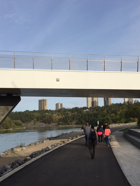 Quite something to see is a common refrain when the Walterdale Bridge project is the topic of conversation, as it was on September 6 when Betty joined a hundred or so other Edmontonians at a public ceremony marking the latest milestone in the landmark project—the now opened trail and staircase system on both sides of the bridge.