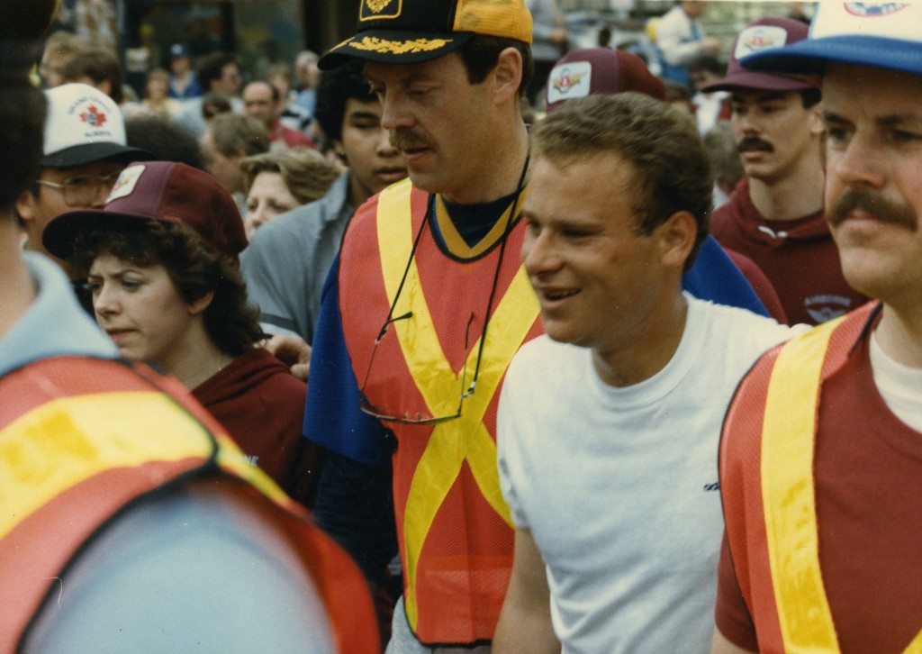 Terry Fox’s Marathon of Hope occurred in 1980, and though he never came through Edmonton, it was certainly big news. This was followed up a few years later by Steve Fonyo, an 18 year old cancer survivor who recreated Terry Fox’s run on what he called the “Journey of Lives”. Fonyo arrived in Edmonton on April 13, 1985, and finished his run across Canada in May of that year.