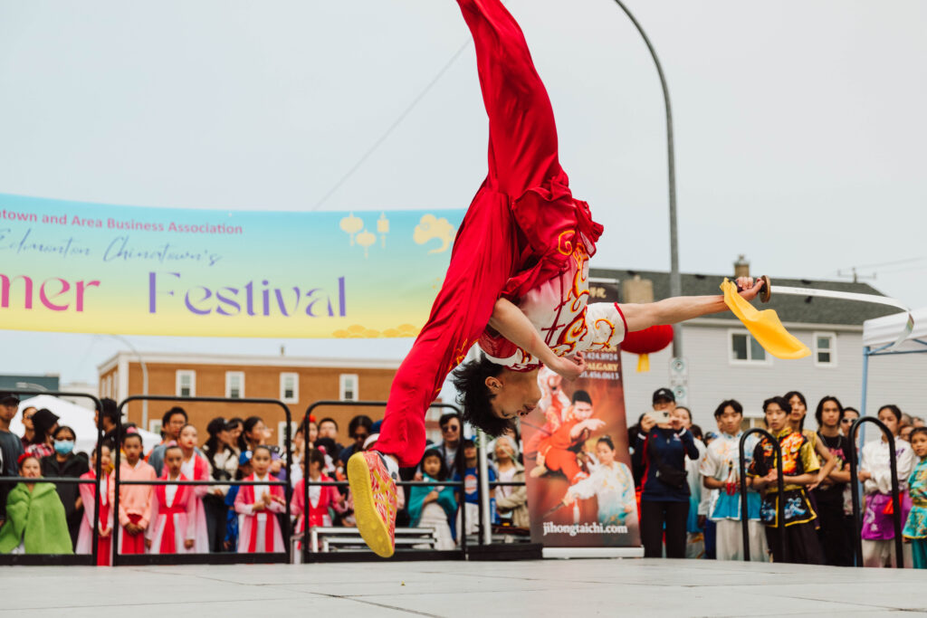 Hundreds of people attended the Summer Festival, a three-block celebration of art, culture, food and Chinatown. Red, orange and pink lions danced on stage. Calligraphers swirled brushes of ink on green paper. Martial artists twirled in the air. Speakers, including City Councillor Jennifer Rice, Senator Paula Simons and MLA Janis Irwin, gave brief speeches during the opening ceremony of the festival.