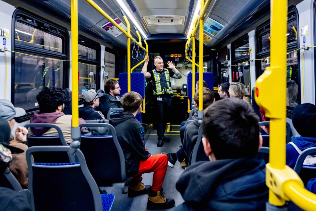 The tour stemmed from ongoing work at the City that’s focused on engaging youth in a way that’s more creative than classroom presentations. FFS and ETS work together to further educate students on the work being done within the field of transit.