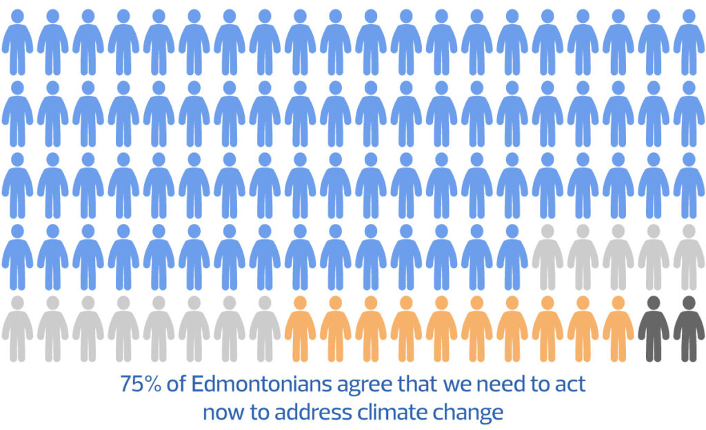 Edmontonians want to see more action on climate change, with 69 per cent wanting to do more personally and 66 per cent wanting the City of Edmonton to either maintain or increase efforts.