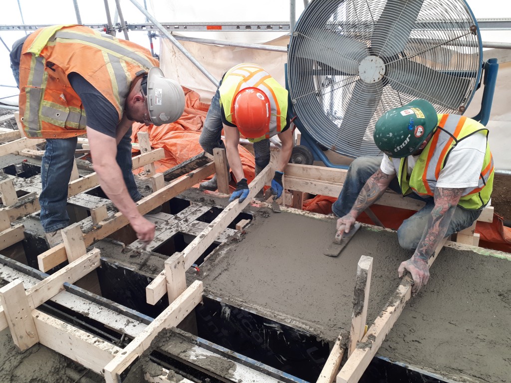 Crews worked all day and evening to pour and press the concrete needed for the new City Hall Fountain.