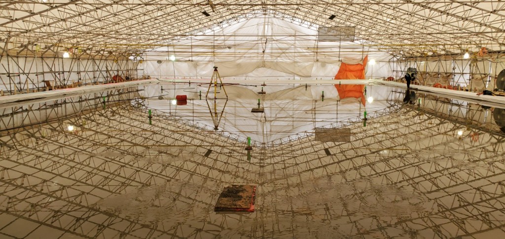 Once the concrete pour was finished, they used 6 inches of water to cure the surface and test for leaks. All went well!