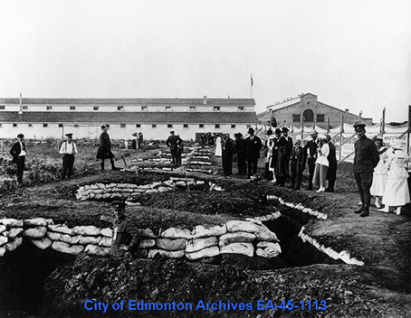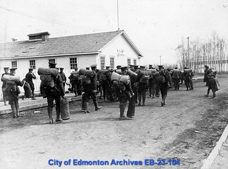 The 1914 City Council Meeting Minutes book records that, on October 20, Alderman Driscoll asked on behalf of the 101 Regiment Edmonton Fusiliers if the Stock Pavilion at the Exhibition Grounds could be used as a drill hall during the winter. A week later, City Council not only approved this motion, but extended their invitation to cover the entire Exhibition Grounds and all other city property. On December 1 of the same year, the City pledged to provide the Stock Pavilion with as much free light, water, and heat as Calgary was supplying to its own troops. It seemed that Edmonton refused to be outdone by its southern rival even in matters of war!